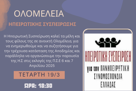 Η ΗΠΕΙΡΩΤΙΚΗ ΣΥΣΠΕΙΡΩΣΗ σας καλεί στην ανοικτή μας ΟΛΟΜΕΛΕΙΑ